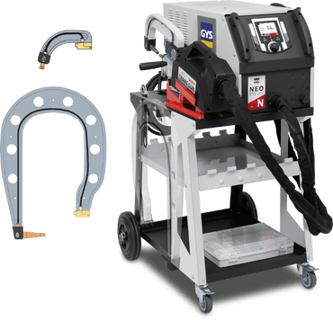 Der GYSPOT PTI NEO ist ein automatisches Punktschweißgerät, das alle Elemente einer Autokarosserie zusammenfügen kann. Die flüssiggekühlte Schweißzange mit integriertem Transformator ist die leichteste auf dem Markt: wiegt nur 9,7 kg mit dem G1-Arm. Handlich und ultrakompakt, ideal für kleine Werkstätten. Der Farbbildschirm ist sehr ergonomisch und einfach zu bedienen. HOCHLEISTUNG Max. 13.000 A Schweißstrom, ideal zum Schweißen aller Stahlarten an modernen Fahrzeugen (HLE/THLE, UHLE und Boron).