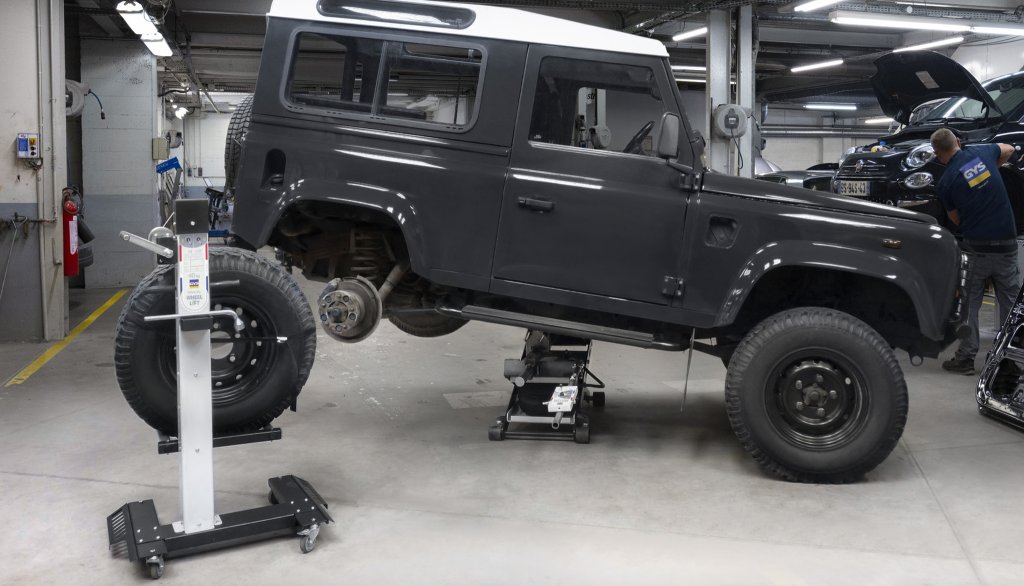 Druckluft betriebene, leicht rangierbare und platzsparende Fahrzeug-Hebebühne für Hublasten bis 2,5 to. (Fahrzeuggewicht). SPOT LIFT PRO ist individuell an die Fahrzeugabmessungen anpassbar und ermöglicht das Rücken schonende Arbeiten am Fahrzeug bis ca. 1,5 m Höhe an flexiblen Einsatzorten innerhalb der Werkstatt.